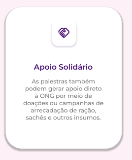 Promovemos palestras educativas e de conscientização em escolas,