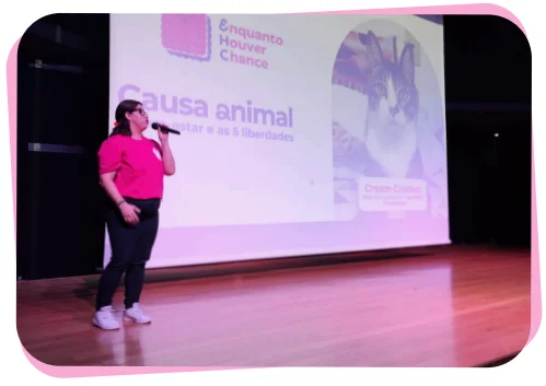 universidades e empresas, abordando temas relacionados à proteção animal, guarda responsável e bem-estar felino.
